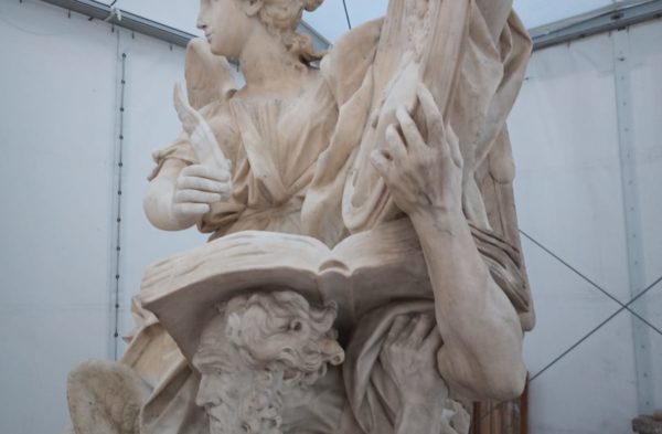 Après 29 de jours d’attente, le moment tant attendu est arrivé; l’équipe de l’Atelier de moulage se rend sur le chantier pour démouler La Renommée. Ils commencent par enlever les