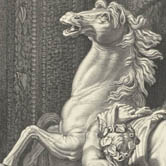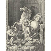 Two horses of the sun and two Tritons grooming them